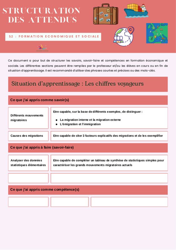 FES : Sstuations d'apprentissage : Un monde en mouvement